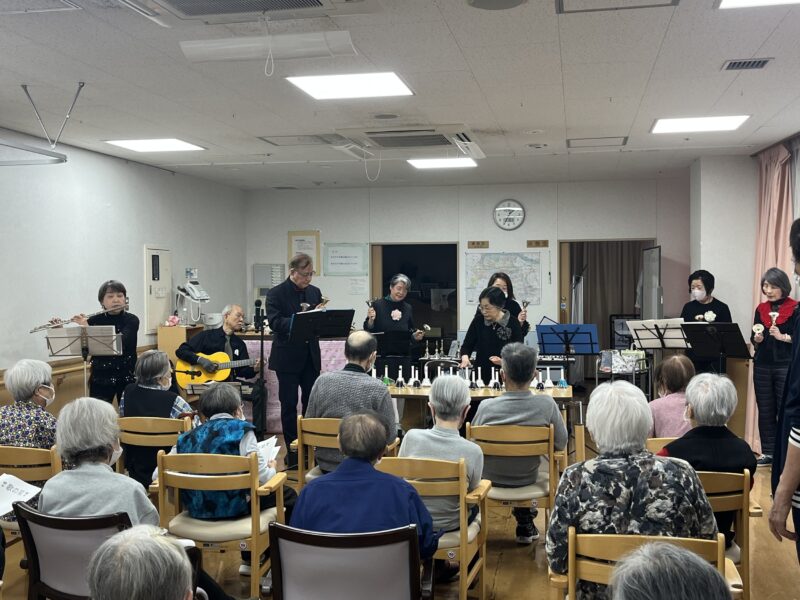 会場にはハンドベルの澄んだ音色、フルートの優しい旋律、そしてギターの力強いリズムが響き渡り、いつもとは少し違う、特別な午後のひとときが始まりました。