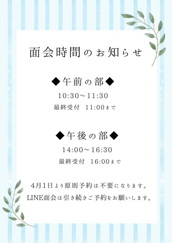 ・事前予約不要(LINE面会は引き続き予約をお願いします)